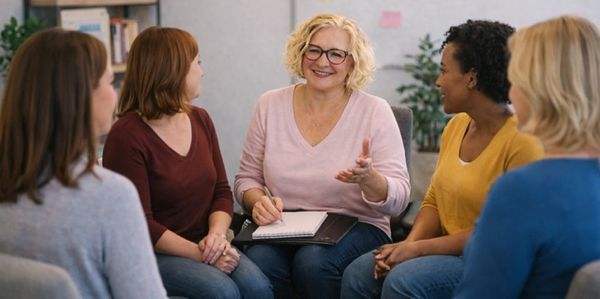 Some women prefer to join a group session, connecting, holding space, sharing, learning in a supportive confidential environment. Coffee and cake a must! Join an open group, or share a private session with your female besties!